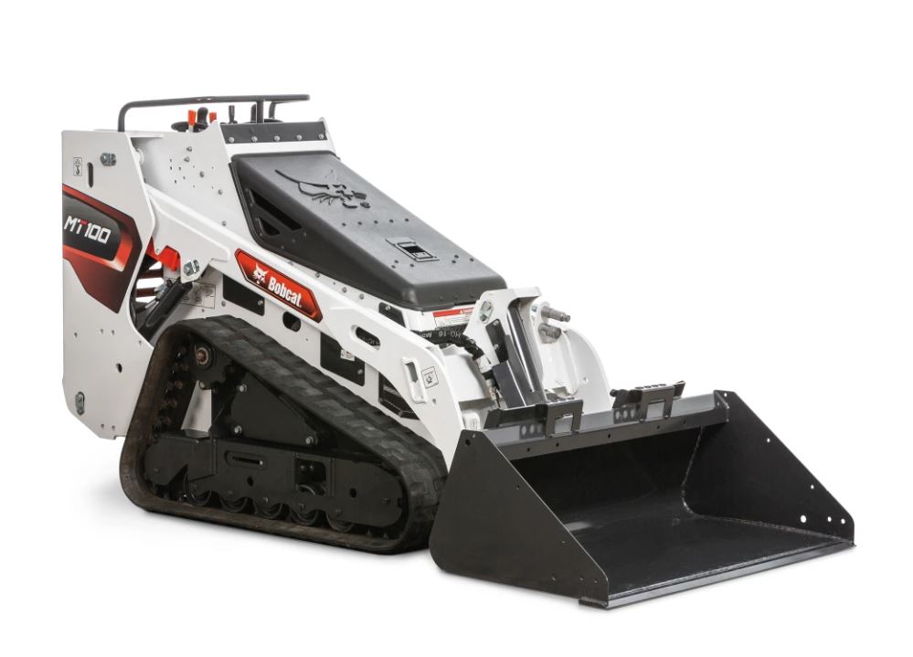 No need for wheelbarrows, shovels or other hand tools when you roll onto jobsites with the Bobcat® MT100 mini track loader. It goes through gates, doorways and other narrow spaces with ease. The machine also delivers a big boost in power with a 1,000-lb. rated operating capacity, powerful breakout force and impressive lift height. The optimized roller spacing on the MT100’s track system improves ride quality for enhanced operator comfort and confidence when working long days. Easy, tool-free access to maintenance areas and advanced safety features, including neutral start interlocks, are standard on the MT100 mini track loader, while sealed rollers eliminate the need for daily roller maintenance and decrease downtime.